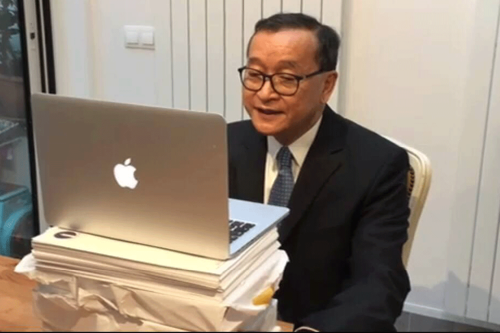 ក្រៅពីបានថ្លែងតាមប្រព័ន្ធអ៊ីនធើរណេត មុខគណៈកម្មាធិការនាយកគណបក្សសង្គ្រោះជាតិ នៅថ្ងៃទី១២ ខែកុម្ភៈ ឆ្នាំ២០១៧ លោក សម រង្ស៊ី ក៏បានសរសេរ ភ្ជាប់ជាមួយវីដេអូ សកម្មភាពនយោបាយរបស់លោក កាលពីពេល កន្លងទៅ ដែលលើកមកផ្សាយដោយបណ្តាញ ទូរទស្សន៍អន្តរជាតិ នៅក្នុងហ្វេសប៊ុករបស់លោក ដែរថា កម្មវិធីទូរទស្សន៍អន្តរជាតិ ALJAZEERA ជាភាសាអង់គ្លេស ផ្សព្វផ្សាយថ្ងៃនេះ ស្តីពីព្រឹត្តិការណ៍ចុងក្រោយនៅប្រទេសកម្ពុជា មេបក្សប្រឆាំង ដែលត្រូវបានគេនិរទេស ទើប តែបានលាលែងពីតំណែង