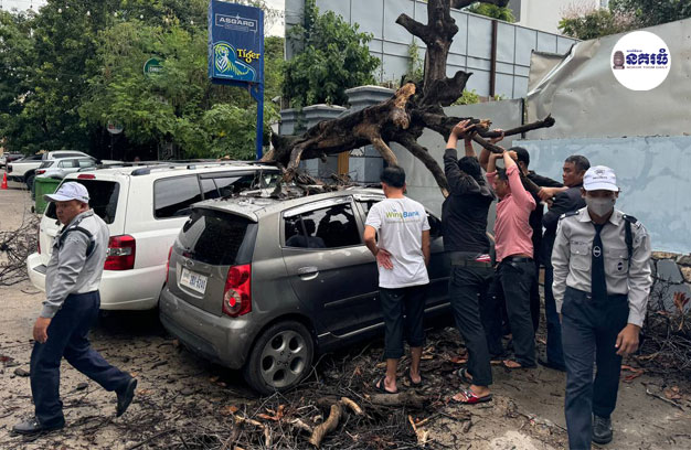 ភ្នំពេញ ៖ ភ្លៀង ១មេធំ លាយខ្យល់កន្ត្រាក់ បានបណ្តាលឱ្យមែកដើមស្វាយដែលពុកផុយ បាក់សង្កត់លើរថយន្ត ចំនួន ៤គ្រឿង រងការខូចខាត សំណាងល្អមិនបង្កឱ្យមនុស្សណាម្នាក់រងគ្រោះថ្នាក់ឡើយ ។