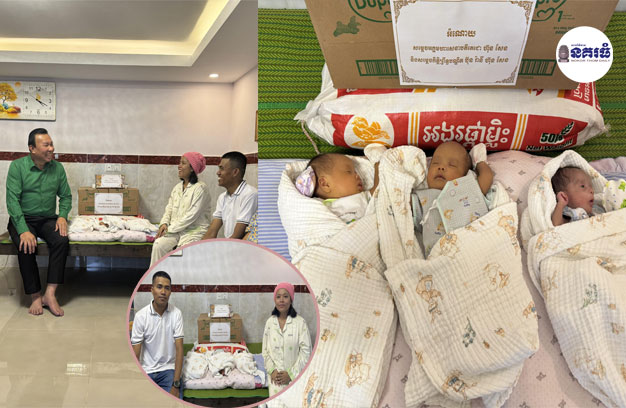 អំណោយឧបត្ថម្ភជូនគ្រួសារសម្រាលបានកូនភ្លោះ៣ នេះ រួមមាន ៖ ថវិកា ៥លានរៀល អង្ករ ៥០គីឡូក្រាម ទឹកដោះគោ ២កេសធំ ស្ករ-ស ៥គីឡូក្រាម សារុង២ និងក្រមា២។