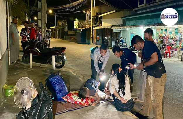 ប្រភពដដែល បន្តថា បន្ទាប់ពីឃើញបែបនេះ ពួកគាត់បានរាយការណ៍ជូនអាជ្ញាធរនិងសមត្ថកិច្ចមូលដ្ឋាន ឱ្យចុះទៅជួយអន្តរាគមន៍ និងពិនិត្យមើលស្ត្រីខាងលើដែលដេកលើចិញ្ចើមផ្លូវ ពេលសមត្ថកិច្ចទៅដល់ បានឃើញមាន កាបូបខោអាវ១ កង្ហារ១គ្រឿង កន្ថោរ១ និងទូរស័ព្ទដៃមួយគ្រឿង។