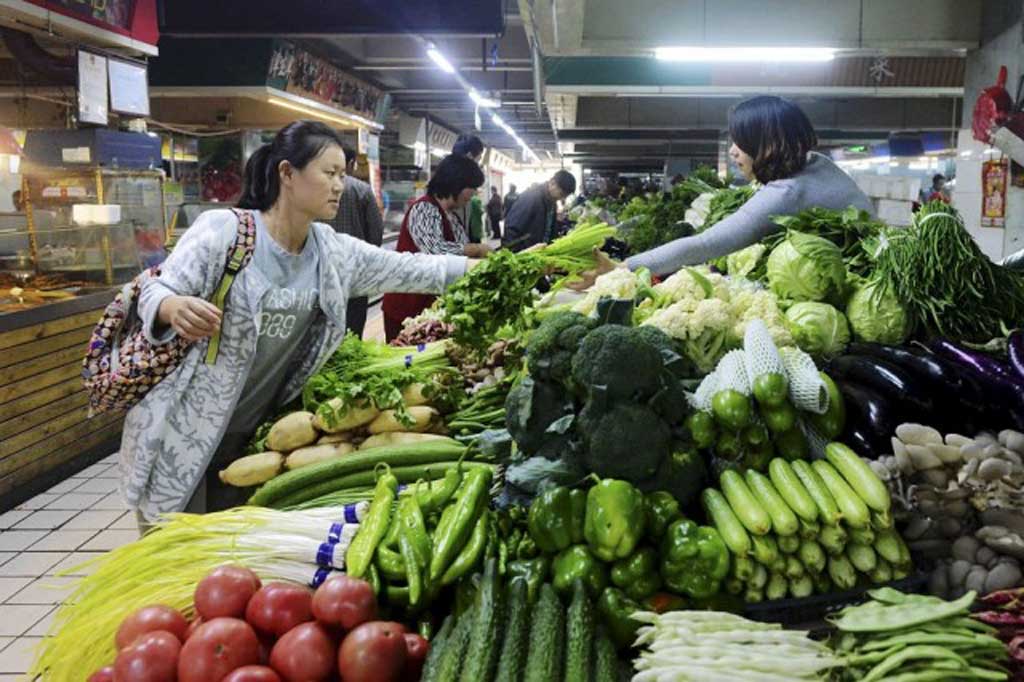 ចិន៖ ក្រសួងពាណិជ្ជកម្មកាលពីដើមសប្តាហ៍នេះបានឲ្យដឹងថាតម្លៃអាហារក្នុងប្រទេសចិនបានធ្លាក់ចុះបន្តិចបន្តួចកាលពីសប្តាហ៍មុន នោះក៏ព្រោះតែតម្លៃហាងឆេងបន្លែ សាច់និងស៊ុតធូរថ្លៃជាងមុន ។