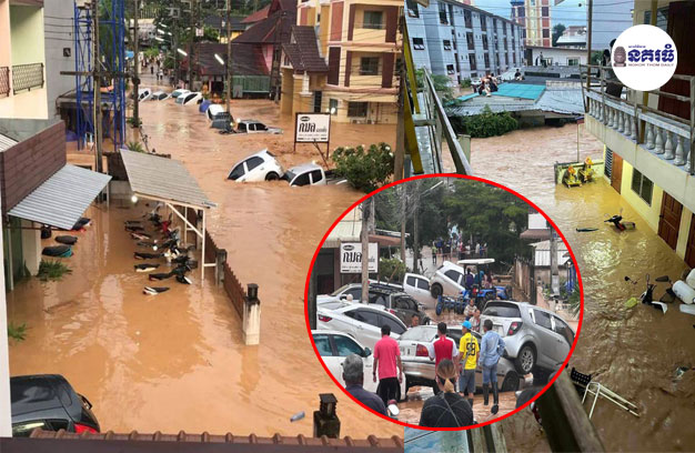 ខេត្តផ:យ៉ៅ (ថៃ) ៖ នៅថ្ងៃ១៧ ខែកញ្ញា ឆ្នាំ២០២៤ បណ្តាញព័ត៌មានថៃ បានរាយការណ៍ថា បន្ទាប់ពីមានភ្លៀងធ្លាក់ខ្លាំង កាលពីយប់ថ្ងៃទី១៦ ខែកញ្ញា បណ្ដាលឲ្យមានជំនន់ទឹកភ្លៀងលិចភូមិមួយចំនួន ក្នុងស្រុកមឿង ខេត្តផ:យ៉ៅ រហូតដល់ម៉ោងប្រហែល ៦:០០ព្រឹក ទឹកបានហូរហៀរលិចផ្លូវ ផ្ទះនិងកន្លែងស្នាក់នៅរបស់និស្សិតសាកលវិទ្យាល័យផ:យ៉ៅ។