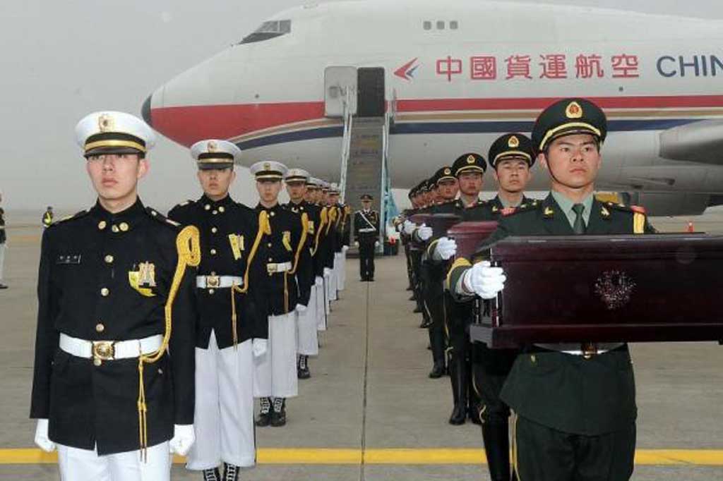 អដ្ឋិធាតុដែលគេលើកយកមកចរចានោះគឺនៅសម័យសង្គ្រាមកូរ៉េឆ្នាំ១៩៥០-១៩៥៣ នៅពេលដែលចិនបានដាក់ពង្រាយកងទ័ពប្រមាណជា១លាននាក់ដើម្បីជួយគាំទ្រកូរ៉េខាងជើង ។ ក្នុងព្រឹត្តការណ៍នោះដែរមានទាហានចិនជាង១០ម៉ឺននាក់បានស្លាប់បាត់បង់ជីវិតអំឡុងពេលផ្ទុះវិវាទនិងការប៉ះទង្គិចគ្នាជាមួយទាហានសហរដ្ឋអាមេរិកនិងកូរ៉េខាងត្បូងក្នុងសមរភូមិ។