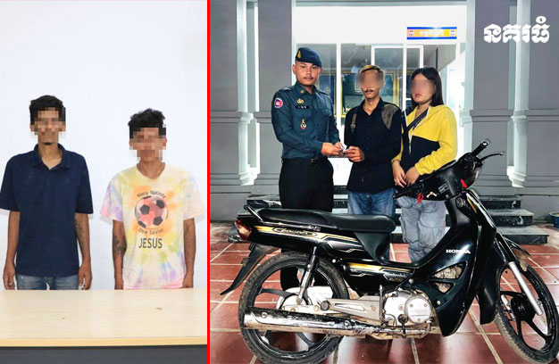 ខេត្តបន្ទាយមានជ័យ ៖ ជនសង្ស័យ ២នាក់ បានខ្ចីម៉ូតូ ១គ្រឿង ពីអ្នកស្គាល់គ្នាជិះ បែរជាយកទៅបញ្ចាំ លុះជនរងគ្រោះជាម្ចាស់ម៉ូតូដាក់ពាក្យបណ្តឹង ក៏ត្រូវបានកម្លាំងការិយាល័យព្រហ្មទណ្ឌកងរាជអាវុធហត្ថខេត្ត ស្រាវជ្រាវចាប់ឃាត់ខ្លួនទាំង២នាក់ នាំយកទៅចាត់ការតាមច្បាប់។