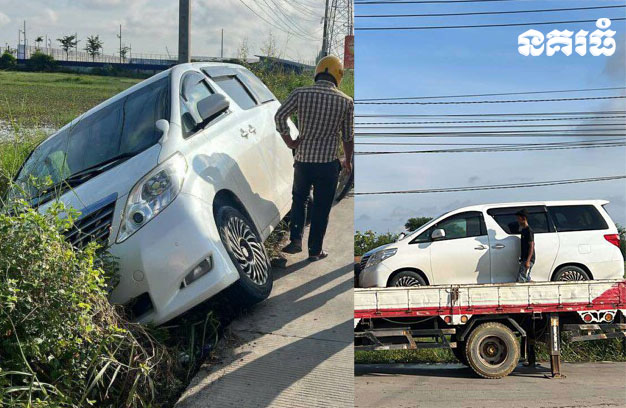 ភ្នំពេញ ៖ រថយន្តទំនើប ១គ្រៀង បើកបរនិងរួមដំណើរដោយជនបរទេសចំនួន៣នាក់ កំពុងបើកបរសុខៗ ស្រាប់តែរេចង្កូតធ្លាក់ផ្លូវ ផ្អៀងមួយចំហៀង វិះនឹងក្រឡាប់ធ្លាក់ចូលប្រឡាយ ហើយក្រោយពេលកើតហេតុ អ្នកបើកបរបានចុះរត់គេចខ្លួនបាត់ ទុកតែអ្នករួមដំណើរ ២នាក់នៅនឹងកន្លែង។ រីឯរថយន្ត ត្រូវបានសមត្ថកិច្ចស្ទូចយកទៅរក្សាទុក ធ្វើការស្រាវជ្រាវ និងរង់ចាំឱ្យម្ចាស់យកឯកសារទៅផ្ទៀងផ្ទាត់ឱ្យច្បាស់លាស់ ទើបប្រគល់ជូនវិញ។