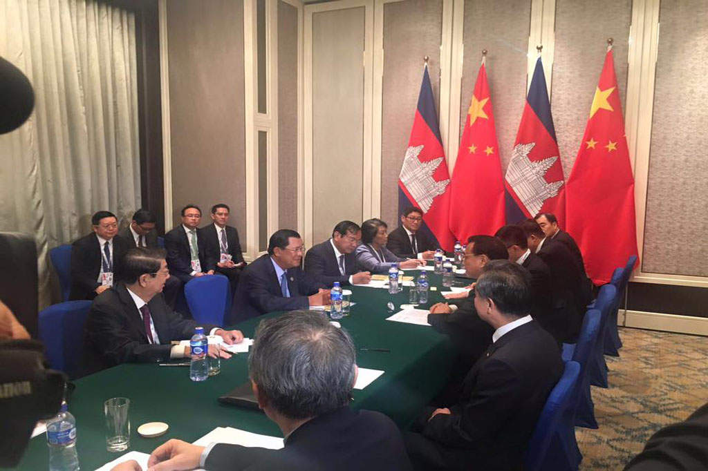 នាជំនួបទ្វេភាគីខាងលើនេះដែរ នាយករដ្ឋមន្ត្រីចិន បានប្រកាសសន្យាផ្តល់ជំនួយឥតសំណងឲ្យកម្ពុជា ចំនួន៣៦០០លានយន់ ប្រហាក់ប្រហែលជិត៦០០លានដុល្លាអាមេរិក សម្រាប់រយៈពេល៣ឆ្នាំ គឺពីឆ្នាំ២០១៦ ដល់ឆ្នាំ២០១៨ ។