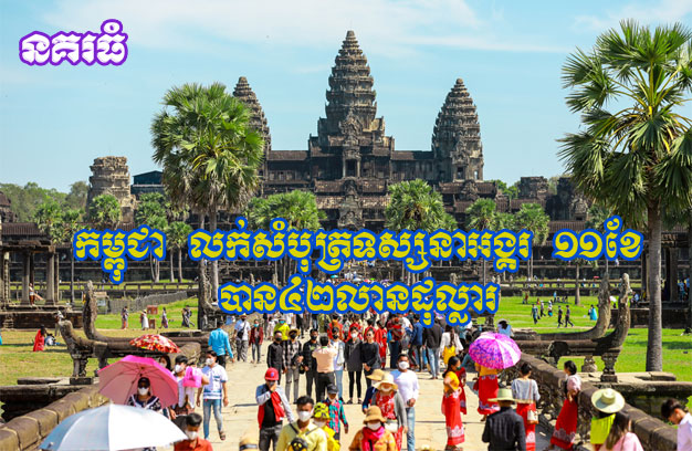 ភ្នំពេញ ៖ រយៈពេល ១១ខែ ឆ្នាំ២០២៤នេះ កម្ពុជា រកចំណូលបានជិត ៤២លានដុល្លារ ពីការលក់សំបុត្រជូនភ្ញៀវទេសចរ ចូលទស្សនារមណីយដ្ឋានអង្គរ។