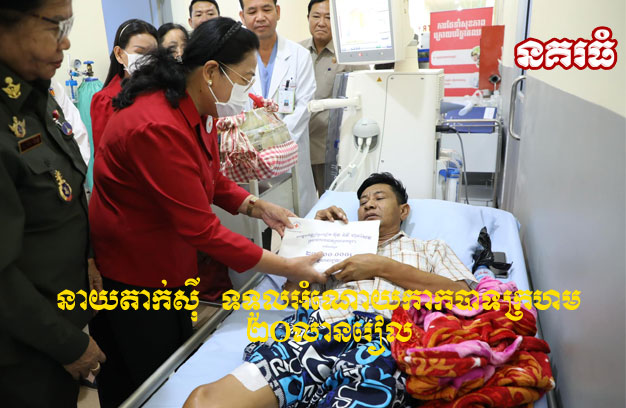ភ្នំពេញ ៖ សម្តេចកិត្តិព្រឹទ្ធបណ្ឌិត ប៊ុន រ៉ានី ហ៊ុនសែន ឧបត្ថម្ភថវិកា ២០លានរៀល និងភេសជ្ជៈមួយចំនួនដល់ តារាកំប្លែង នាយតាក់ស៊ី ដែលកំពុងសម្រាកព្យាបាលជំងឺប្រចាំកាយ នៅមន្ទីរពេទ្យព្រះកេតុមាលា។