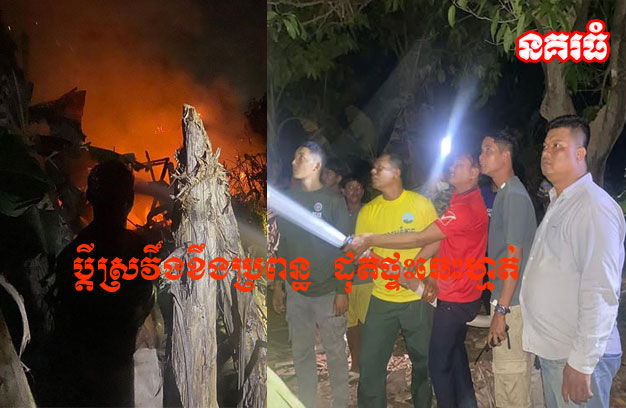 ខេត្តកណ្តាល ៖ បុរសម្នាក់ ក្រោយពីផឹកស្រាស្រវឹងធ្លាក់ភ្នែក ចូលដល់ផ្ទះ រករឿងឈោះប្រកែកជាមួយប្រពន្ធ រហូតដល់បែកគំនិតដុតផ្ទះចោល បង្កឱ្យឆាបឆេះយ៉ាងសន្ធោសន្ធៅ រួចរត់គេចខ្លួនបាត់ ទុកឱ្យស្ត្រីជាប្រពន្ធអង្គុយ ទួញយំបោកខ្លួន សម្លឹងមើលផ្ទះដែលត្រូវភ្លើងលេបប្រាក់គ្មានសល់។