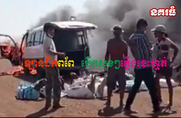 ខេត្តបន្ទាយមានជ័យ ៖ រថយន្តទួរីស ១គ្រឿង មានដឹកសត្វពពែ ជាច្រើនក្បាល កំពុងបើកបរតាមផ្លូវសុខៗ ស្រាប់តែឆ្លងចរន្ត បង្កជាអគ្គិភ័យឆាបឆេះយ៉ាងសន្ធោសន្ធៅ ហើយភ្លាមនោះ អ្នកបើកបររថយន្តបានព្យាយាមរំដោះបានសត្វពពែ ចេញមកក្រៅបានមួយចំនួនធំ នៅសល់ តិចតួច ត្រូវងាប់ក្នុងភ្នក់ភ្លើង រីឯរថយន្ត ត្រូវភ្លើងឆេះអស់ស្ទើរទាំងស្រុង។