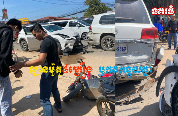 ឡានម៉ូតូ៥គ្រឿង បុ…/កតកន្ទុយគ្នា