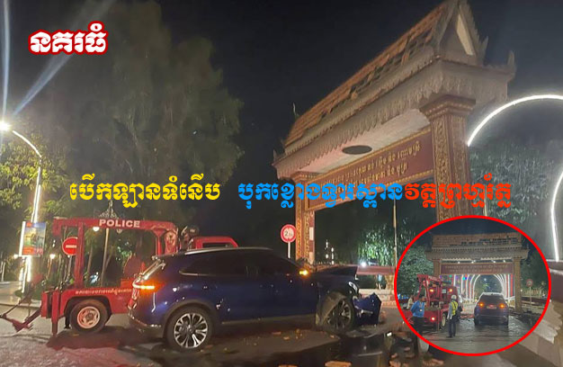 ខេត្តសៀមរាប ៖ ជនជាតិចិន និងវៀតណាម ១ក្រុម បានបើករថយន្តទំនើប ១គ្រឿង ក្នុងល្បឿនលឿន រួចក៏ជ្រុលទៅបុកខ្លោងទ្វារស្ពានវត្តព្រហ្មរ័ត្ន យ៉ាងពេញទំហឹង បណ្តាលឱ្យខូចខាតទាំងរថយន្ត និងខ្លោងទ្វារស្ពាន សំណាងល្អមិនបង្កឱ្យមនុស្សណាម្នាក់រងគ្រោះថ្នាក់ធ្ងន់ធ្ងរឡើយ។