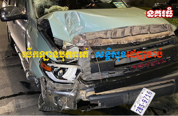 ភ្នំពេញ ៖ បុរសម្នាក់ ជាជនបរទេស រួមដំណើរជាមួយមនុស្សប្រុសស្រី ៤នាក់ផ្សេងទៀត បានបើករថយន្ត ១គ្រឿង ក្នុងល្បឿនលឿន លុះមកដល់ផ្លូវកោង បានរេចង្កូតឡើងខឿន ជ្រុលទៅបុករះដើមឈើ រួចបន្តបុក បង្គោលភ្លើង បាក់១ដើម ក្នុងបរិវេណបឹងកក់ តែរថយន្តបង្កហេតុ មិនព្រមឈប់ ព្យាយាមបើករត់ទៅមុខ ជិត១គីឡូម៉ែត្រ ក៏ត្រូវក្រុមសន្តិសុខតាមឃាត់បាន។