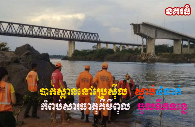 ប្រេស៊ីល ៖ មន្ត្រីប្រេស៊ីល កំពុងប្រញាប់ប្រញាល់ស៊ើបអង្កេតការកំពប់សារធាតុពុល ចូលក្នុងទឹក ក្រោយហេតុការណ៍បាក់ស្ពាន បណ្តាលឲ្យរថយន្តជាច្រើនគ្រឿង ធ្លាក់ចូលទន្លេ រួមទាំងរថយន្តដឹកសារធាតុគីមី រាប់ពាន់លីត្រ។