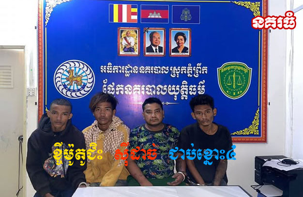 ជនសង្ស័យទាំង៤នាក់ ដែលត្រូវសមត្ថកិច្ចចាប់ឃាត់ខ្លួន រួមមាន ទី១-ឈ្មោះលីម គីមថុង ភេទប្រុស អាយុ២១ឆ្នាំ មុខរបរមិនពិតប្រាកដ រស់នៅភូមិភ្នំប្រាំពីរ ឃុំបួរ ស្រុកភ្នំព្រឹក។ ទី២-ឈ្មោះផន ថៃ ភេទប្រុស អាយុ២០ឆ្នាំ មុខរបរមិនពិតប្រាកដ រស់នៅភូមិភ្នំប្រាំពីរ ឃុំបួរ ស្រុកភ្នំព្រឹក។ ទី៣-ឈ្មោះរ៉េត ភារុណ ភេទប្រុស អាយុ២៩ឆ្នាំ មុខរបរមិនពិតប្រាកដ រស់នៅភូមិភ្នំប្រាំពីរ ឃុំបួរ ស្រុកភ្នំព្រឹក និងទី៤-ឈ្មោះរ៉ា សុរិន ភេទប្រុស អាយុ២០ឆ្នាំ មុខរបរមិនពិតប្រាកដ រស់នៅភូមិអូរដា ឃុំបួរ ស្រុកភ្នំព្រឹក។