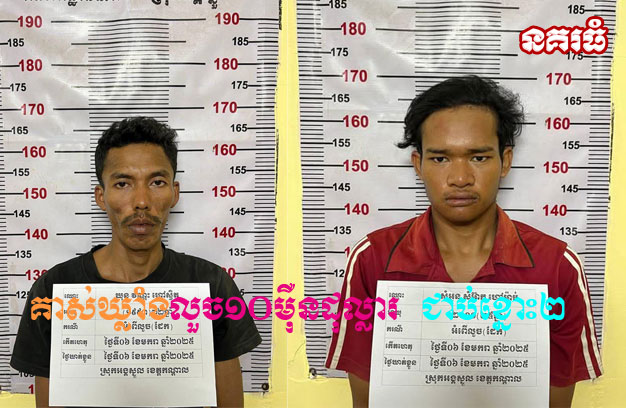 ខេត្តកណ្តាល ៖ ជនសង្ស័យ ចំនួន២នាក់ បានធ្វើសកម្មភាពផ្លោះរបងចូលទៅគាស់ឃ្លាំង ១កន្លែង លួចយកដែក និងសម្ភារៈជាច្រើនលើកច្រើនសា ដែលគិតជាទឹកប្រាក់ប្រមាណ ១០ម៉ឺនដុល្លារ លុះចុងក្រោយត្រូវបានប្រជា ពលរដ្ឋប្រទះឃើញរាយការណ៍ប្រាប់សមត្ថកិច្ច ចុះឃាត់ខ្លួនបានចំនួន២នាក់ភ្លាមៗ នាំយកមកចាត់ការតាម ច្បាប់។
