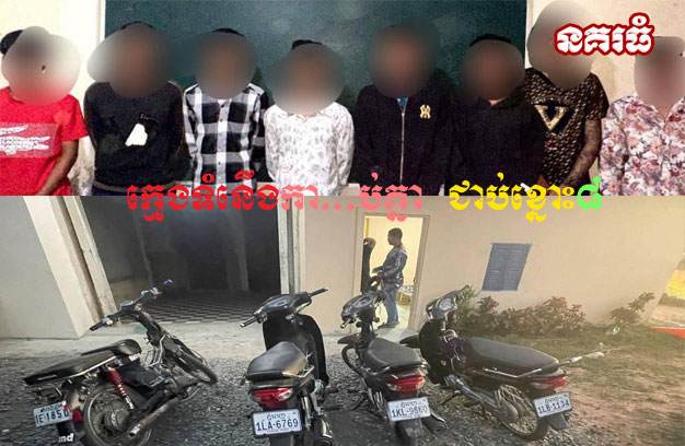 ខេត្តកំពង់ស្ពឺ ៖ ក្មេងទំនើង ចំនួន២ក្រុម មានគ្នាប្រមាណជាង១០នាក់ ប្រដាប់ដោយដាវ កាំបិត និងដុំថ្ម ស្ទើរគ្រប់ដៃ បានធ្វើសកម្មភាពដេញវាយ កាប់ចាក់គ្នាយ៉ាងប្រសាច បណ្តាលឱ្យរងរបួសរៀងខ្លួន និងខូចខាតម៉ូតូ ចំនួន២គ្រឿង បន្ទាប់មកបាននាំគ្នារត់គេចខ្លួនបាត់អស់ លុះក្រោយមកត្រូវបានសមត្ថកិច្ចជំនាញស្រាវជ្រាវឃាត់ ខ្លួនបានសរុបចំនួន៨នាក់ នាំយកមកចាត់ការតាមច្បាប់ ខណៈបក្ខពួកផ្សេងទៀត បានរត់គេចខ្លួនបាត់អស់។ករណីអំពើហិង្សានេះ បានកើតឡើង កាលពីវេលាម៉ោង១១យប់ ថ្ងៃទី០៥ ខែមករា ឆ្នាំ២០២៥ នៅចំណុចផ្លូវលំមួយកន្លែង ស្ថិតក្នុងភូមិសាលាគ្រួស ឃុំព្រះនិព្វាន ស្រុកគងពិសី។