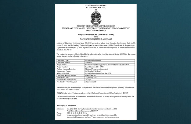 Homeព័ត៌មានជាតិសេចក្តីជូនដំណឹងរបស់ ក្រសួងអប់រំ យុវជន និងកីឡា ព័ត៌មានជាតិ សេចក្តីជូនដំណឹងរបស់ ក្រសួងអប់រំ យុវជន និងកីឡា By Davin January 14, 2025 0 0 Share FacebookTwitterPinterestWhatsApp RELATED ARTICLES ព័ត៌មានជាតិ សួស វីសា មិនមែនក្រទេ February 10, 2026 ព័ត៌មានជាតិ សេចក្តីជូនដំណឹង ស្តីអំពី ក្រសួងអប់រំ យុវជន និងកីឡា February 9, 2026 ព័ត៌មានជាតិ សេចក្តីជូនដំណឹង ស្តីអំពី ក្រសួងអប់រំ យុវជន និងកីឡា February 9, 2026