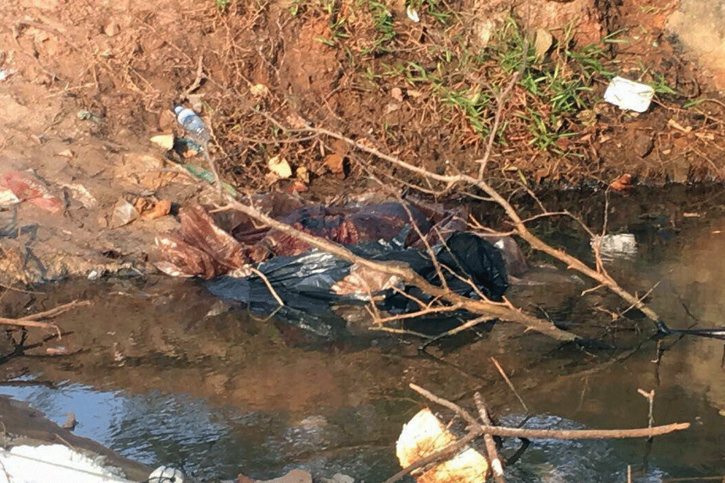 សពដែលត្រូវឃាតករដៃឆៅសម្លាប់ច្រក បាវជាមនុស្សប្រុស ស្លៀកខោខ្លី ពណ៌ក្រហម ឆ្នូតសងខាងពណ៌ទឹកប៊ិក តែមិនត្រូវបានស្គាល់ អត្តសញ្ញាណនោះទេ។