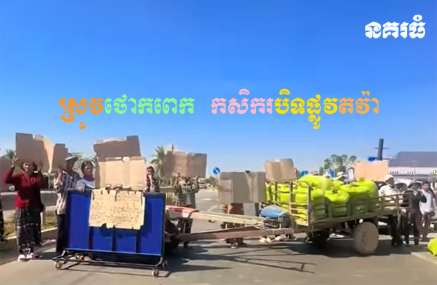 ខេត្តបាត់ដំបង ៖ ប្រជាពលរដ្ឋមួយក្រុម ប្រមាណជិត២០នាក់ បាននាំគ្នាដាក់បារ៉ាស់ និងគោយន្តកន្ត្រៃ និងបាវស្រូវ ពង្រាយបិទកំណាត់ផ្លូវជាតិលេខ៥ បង្កឱ្យមានការកកស្ទះចរាចរណ៍ ប្រមាណជាងកន្លះម៉ោង ទាមទារឱ្យក្រសួងពាក់ព័ន្ធ ដោះស្រាយតម្លៃស្រូវធ្លាក់ថ្លៃ ខណៈ ក្រសួងកសិកម្ម តាមរយៈអ្នកនាំពាក្យ បានតបថា ក្រសួង មិនបានព្រងើយកន្តើយចំពោះបញ្ហានេះឡើយ។