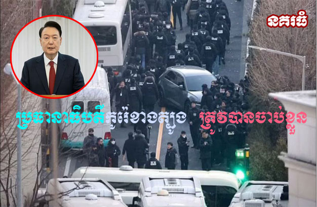 កូរ៉េខាងត្បូង ៖ ប្រធានាធិបតីកូរ៉េខាងត្បូង ដែលត្រូវបានដកតំណែង ត្រូវបានចាប់ខ្លួន ប៉ុន្មានម៉ោងបន្ទាប់ពីអ្នកគាំទ្ររបស់គាត់ បានប៉ះទង្គិចជាមួយប៉ូលិស ខណៈដែលមន្រ្តីបានឡោមព័ទ្ធផ្ទះរបស់គាត់ក្នុងកិច្ចខិតខំប្រឹងប្រែងដើម្បីចាប់ខ្លួនគាត់។