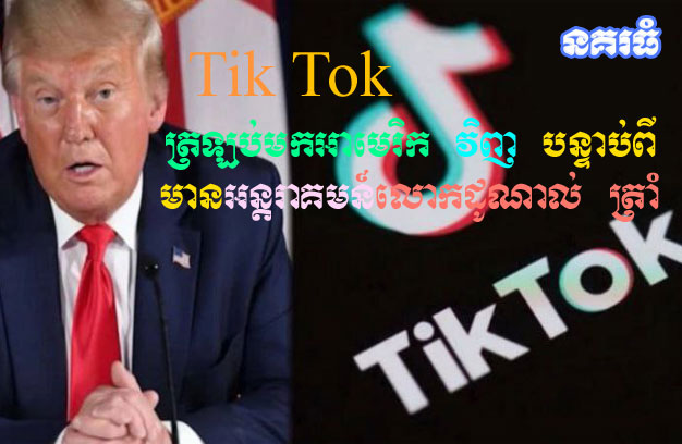 សហរដ្ឋអាមេរិក ៖ បណ្តាញសង្គម ទិកតុក (TikTok) បានត្រឡប់មកបម្រើសេវាកម្មក្នុងសហរដ្ឋអាមេរិក វិញបន្ទាប់ពីត្រូវបានបិទអស់ជាច្រើនម៉ោង កាលពីយប់ថ្ងៃទី១៨ ខែមករា ឆ្នាំ២០២៥ ដោយសារតែលោកដូណាល់ ត្រាំ (Donald Trump) ប្រធានាធិបតីថ្មី នៃសហរដ្ឋអាមេរិក បានសន្យាថា នឹងប្រើបញ្ជាពិសេស ដើម្បីពន្យារពេលបម្រាមលើកម្មវិធីបណ្តាញសង្គមវីដេអូពេញនិយមនេះ ដែលមានអ្នកប្រើប្រាស់ប្រមាណ ១៧០លាននាក់ នៅសហរដ្ឋអាមេរិក។