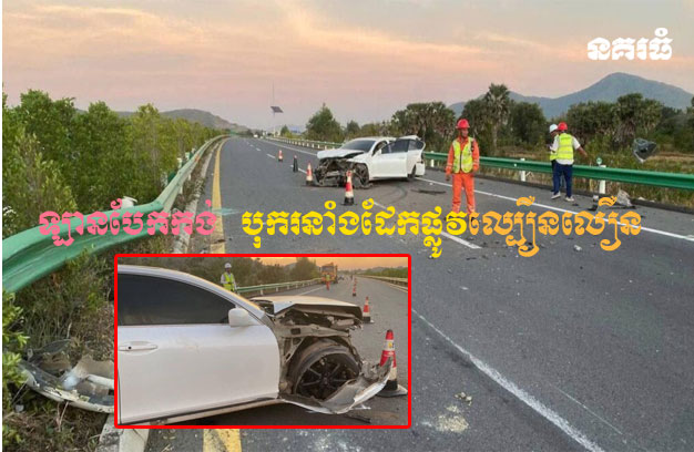 ខេត្តកំពង់ស្ពឺ ៖ រថយន្ត ១គ្រឿង បើកបរដោយបុរសជនជាតិចិន រួមដំណើរជាមួយជនជាតិចិន៤នាក់ទៀត បើក បរនៅលើផ្លូវល្បឿនលឿន ស្រាប់តែបែកកង់ក្រោយ ធ្វើឱ្យរេចង្កូតទៅបុករនាំងដែកវិលច្រើនត្រឡប់ រងការខូច ខាតផ្នែកខាងមុខយ៉ាងដំណំ តែសំណាងល្អ មិនបង្កឱ្យមនុស្សណាម្នាក់រងរបួសឡើយ។