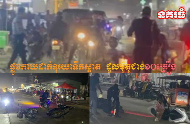 តាមប្រភពព័ត៌មានពីកន្លែងកើតហេតុ បានឱ្យដឹងថា មានម៉ូតូប្រជាពលរដ្ឋអ្នកដំណើរ ប្រមាណជាង ១០គ្រឿង បានរអិលដួលជាបន្តបន្ទាប់ នៅត្រង់ចំណុចផ្លូវបេតុង ដែលមានភក់ជ្រាំរអិលប៉ប៉ាច់ លុះពេលម៉ូតូជិះឆ្លងកាត់ មិនបានចាប់អារម្មណ៍និងប្រយ័ត្ន ក៏បានរអិលដួល របួសទាំងមនុស្ស ខូចខាតទាំងម៉ូតូ។