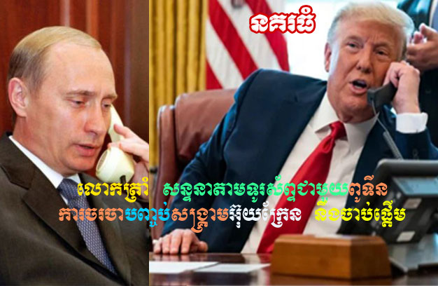 សហរដ្ឋអាមេរិក ៖ លោកដូណាល់ ត្រាំ (Donald Trump) ប្រធានាធិបតីសហរដ្ឋអាមេរិក បានបង្ហើបថា ការចរចាដើម្បីបញ្ចប់សង្គ្រាមនៅអ៊ុយក្រែន នឹងចាប់ផ្តើមភ្លាមៗ បន្ទាប់ពីលោកបាននិយាយតាមទូរស័ព្ទជាមួយលោក វ្ល៉ាឌីមៀរ ពូទីន ប្រធានាធិបតីរុស្ស៉ី ។