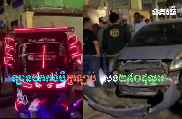 ភ្នំពេញ ៖ រថយន្ត ១គ្រឿង បើកបរដោយជនបរទេសម្នាក់ ធ្វើដំណើរក្នុងល្បឿនលឿន រួចក៏ជ្រុលទៅបុកម៉ូតូកង់បី ១គ្រឿ ងពេញទំហឹង បណ្តាលឱ្យម៉ូតូកង់បីក្រឡាប់ ខូចខាតយ៉ាងដំណំ សំណាងល្អមិនបង្កឱ្យអ្នកបើកបរកង់បី រងរបួសអ្វីធ្ងន់នោះទេ ហើយក្រោយកើតហេតុ ភាគីជនបរទេសជាអ្នកបើកបររថយន្តបង្កហេតុ បានទទួល ស្គាល់កំហុស យល់ព្រមចេញសងសំណង២៥០ដុល្លារ ទៅឱ្យភាគីកង់បី ដើម្បីបញ្ចប់រឿង។