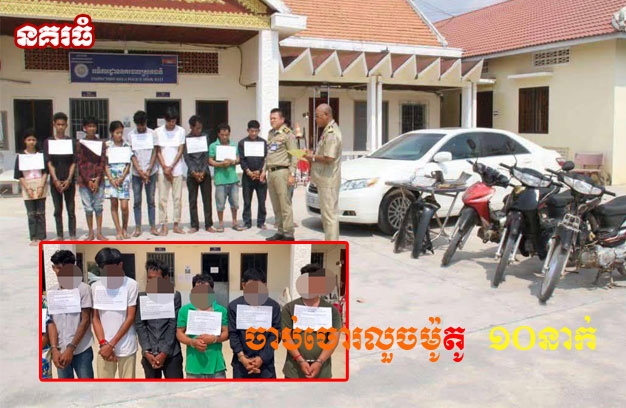 ខេត្តតាកែវ ៖ ជនសង្ស័យ ១ក្រុម បានធ្វើសកម្មភាពលួចម៉ូតូ ១គ្រឿង បានសម្រេច តែត្រូវបានកម្លាំងសមត្ថកិច្ចជំនាញចេញអន្តរាគមន៍ ស្ទាក់បង្ក្រាបបានភ្លាមៗ និងឈានដល់ការស្រាវជ្រាវ បង្ក្រាបបក្ខពួកបានមួយសម្បុក សរុប១០នាក់។