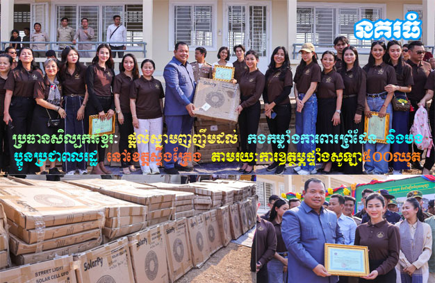 សូមបញ្ជាក់ថា លោកជំទាវអ្នកឧកញ៉ា ម៉ៅ ចំណាន គិត ម៉េង ប្រធានសមាគមនៅថ្ងៃទី១៧ ខែកុម្ភៈ ឆ្នាំ២០២៥នេះ បានដឹកនាំសិល្បករ-សិល្បាការិនីនិងសប្បុរសជននានា ចូលរួមនាំយកអំពូលសូឡាចំនួន៥០០ឈុត ទៅប្រគល់ជូនដល់កងកម្លាំងប្រដាប់អាវុធនិងអាជ្ញាធរនៅភូមិសាស្ត្រស្រុកសៀមប៉ាង ខេត្តស្ទឹងត្រែង ដែលកំពុងមានតម្រូវការអគ្គិសនីជាចាំបាច់ ក្រោមវត្តមានលោកស្រី ឡុង ភិរម្យ រដ្ឋលេខាធិការទេសចរណ៍និងជាក្រុមប្រឹក្សាភិបាលនៃសមាគមសិល្បករខ្មែរ និងលោក សរ សុពុត្រា អភិបាលនៃគណៈអភិបាលខេត្តស្ទឹងត្រែង។