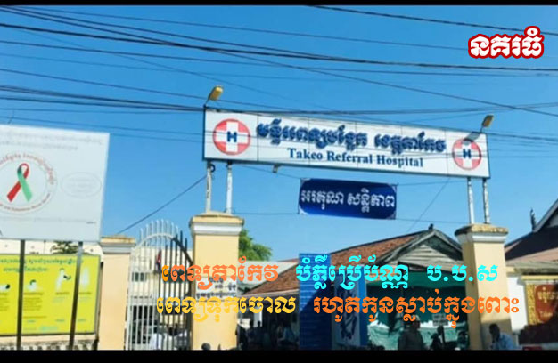 ខេត្តតាកែវ ៖ មន្ទីរពេទ្យបង្អែកខេត្តតាកែវ បានចេញសេចក្តីបំភ្លឺ បុរសម្នាក់ បានអះអាងថា ប្រពន្ធរបស់ខ្លួន មានផ្ទៃពោះគ្រប់ខែ ឈឺពោះសម្រាល ខ្លួនប្រញាប់ដឹកបញ្ជូនទៅកាន់មន្ទីរពេទ្យបង្អែកខេត្តតាកែវ ដើម្បីឱ្យក្រុមគ្រូ ពេទ្យជំនាញជួយសម្រាលកូនឲ្យ លុះទៅដល់បែរជាត្រូវគ្រូពេទ្យទុកចោល ២យប់ រហូតបណ្តាលឱ្យកូនរបស់ខ្លួនបានស្លាប់នៅក្នុងផ្ទៃ ដែលករណីនេះគឺដោយសារខ្លួនប្រើប័ណ្ណ ប.ប.ស ទើបពេទ្យទុកចោល មិនយកចិត្តទុកដាក់។
