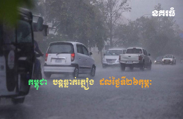ភ្នំពេញ ៖ ក្រសួងធនធានទឹកនិងឧតុនិយម បានបញ្ជាក់ឱ្យដឹង កាលពីព្រឹកថ្ងៃទី២៤ ខែកុម្ភៈ ឆ្នាំ២០២៥ ថា នៅតាមតំបន់មួយចំនួនក្នុងព្រះរាជាណាចក្រកម្ពុជា នឹងបន្តមានភ្លៀងធ្លាក់ ដល់ថ្ងៃទី២៦ ខែកុម្ភៈ ឆ្នាំ២០២៥ ខណៈសីតុណ្ហភាពមានចាប់ពី២២អង្សាសេ ដល់៣៤អង្សាសេ។ ការមានភ្លៀងធ្លាក់ដោយតបន់នេះ ដោយសាររបប ខ្យល់មូសុងឦសាន ជាមួយសម្ពាធទាបនៅតែបន្តគ្របដណ្តប់លើសមុទ្រចិនខាងត្បូង អាងទន្លេមេគង្គក្រោម និងលើព្រះរាជាណាចក្រកម្ពុជា។