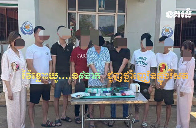 ខេត្តមណ្ឌលគិរី ៖ ជនជាតិវៀតណាម ប្រុសស្រី ចំនួន៩នាក់ ដែលជាមុខសញ្ញាជួញដូរ រក្សាទុក និងប្រើប្រាស់ខុសច្បាប់នូវសារធាតុញៀន ត្រូវបានកម្លាំងសមត្ថកិច្ចជំនាញបង្ក្រាបបាន នៅក្នុងទីតាំងរីសតមួយកន្លែង កណ្តា លក្រុងសែនមនោរម្យ ព្រមទាំងដកហូតបានវត្ថុតាង ថ្នាំញៀន មួយចំនួន។