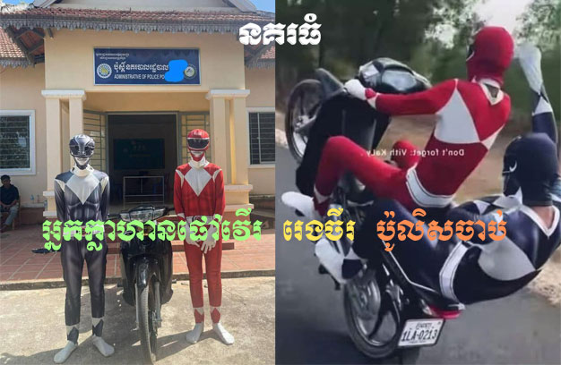 ខេត្តស្វាយរៀង ៖ យុវជន២នាក់ ចូលចិត្តមើលរឿងផៅវើរ រេងចឺរ (Power Rangers) រហូតដល់ស្រឡាញ់ចូលចិត្តឈុតសម្លៀកបំពាក់តួអង្គអ្នកក្លាហាន Power Rangers ក៏នាំគ្នាទិញយកមកស្លៀកពាក់ ហើយបង្ហោះម៉ូតូលេង តាមផ្លូវ ទីបំផុតត្រូវបានសមត្ថកិច្ចជំនាញចុះស្រាវជ្រាវឃាត់ខ្លួនទាំង២នាក់។