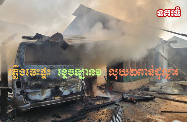 ភ្លើងឆេះផ្ទះ ខ្ទេចឡាន១ លុយ២ពាន់ដុល្លារ