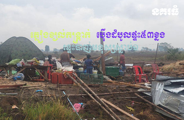 ខេត្តបាត់ដំបង ៖ ស្រុកចំនួន៦ នៃខេត្តបាត់ដំបង ត្រូវបានរងការវាយប្រហារដោយបាតុភូតគ្រោះធម្មជាតិ ភ្លៀងខ្យល់កន្ត្រាក់ និងរន្ទះបាញ់ បណ្តាលឱ្យមនុស្សម្នាក់ បាត់បង់ជីវិត និងរងបួសម្នាក់ ព្រមទាំងប៉ើងរបើកដំបូលផ្ទះ សរុបចំនួន៥៣ខ្នង។