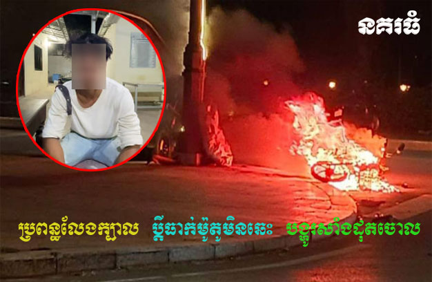ខេត្តសៀមរាប ៖ បុរសម្នាក់ កំពុងមានវិបត្តិផ្លូវចិត្តរឿងប្រពន្ធសុំលែង នឹកឃើញចង់ទៅផ្ទះមិត្តភក្តិ ដើម្បីផឹក កាត់សាញ និងរៀបរាប់ពីរឿងក្នុងចិត្ត លុះពេលទាញម៉ូតូសណ្តោងរ៉ឺម៉ក ជិះចេញទៅបានពាក់កណ្តាលផ្លូវ ក៏រលត់ ខំធាក់យ៉ាងណាក៏មិនឆេះ ធ្វើឱ្យមួម៉ៅក្តៅក្រហាយ ក៏បង្ហូរសាំង ដុតម៉ូតូចោល បង្កឱ្យមានការភ្ញាក់ផ្អើលឡើង កាលពីវេលាម៉ោង ៦និង៣០នាទីព្រលប់ ថ្ងៃទី១៩ ខែមីនា ឆ្នាំ២០២៥ ស្ថិតនៅចំណុចខាងមុខមន្ទីរពេទ្យគន្ធបុប្ផា តាមផ្លូវទៅប្រាសាទអង្គរវត្ត ស្ថិតក្នុងភូមិមណ្ឌល៣ សង្កាត់ស្លក្រាម ក្រុងសៀមរាប។