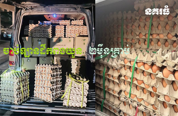 ប្រតិបត្តិការបង្ក្រាបឡានដឹកពងយួន អត់ច្បាប់នេះ បានធ្វើឡើង កាលពីយប់ថ្ងៃទី២៥ ខែមីនា ឆ្នាំ២០២៥។រថយន្តដែលត្រូវបានចាប់ឃាត់ ម៉ាកសាំងយ៉ុង ពណ៌សំបកឪឡឹក ពាក់ស្លាកលេខ ខាងមុខ ភ្នំពេញ 2J-4787 ចំណែកខាងក្រោយ ពាក់ស្លាកលេខ តាកែវ 2C-7812។