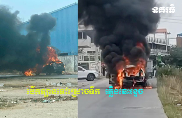 ភ្នំពេញ ៖ ស្ត្រីម្នាក់ បានបើករថយន្ត ១គ្រឿង ចេញពីផ្ទះ បំណងទៅរកស្រោចទឹក រំដោះគ្រោះ មុនចូលឆ្នាំថ្មី ស្រាប់តែបើករថយន្តដល់ពាក់កណ្តាលផ្លូវ រលត់ម៉ាស៊ីន រួចក៏មានផ្សែងហុយខ្មួលខ្មាញ់ គួរផ្សំនឹងអណ្តាតភ្លើងផង ធ្វើឱ្យស្ត្រីជាម្ចាស់រថយន្តប្រញាប់បើកទ្វាររត់ចេញក្រៅទាន់ពេល មិនមានគ្រោះថ្នាក់ឡើយ។ ប៉ុន្តែរថយន្ត ក្លាយជាចំណីភ្លើងអស់ទាំងស្រុង សល់តែគ្រោងឆ្អឹងដែកប៉ុណ្ណោះ។