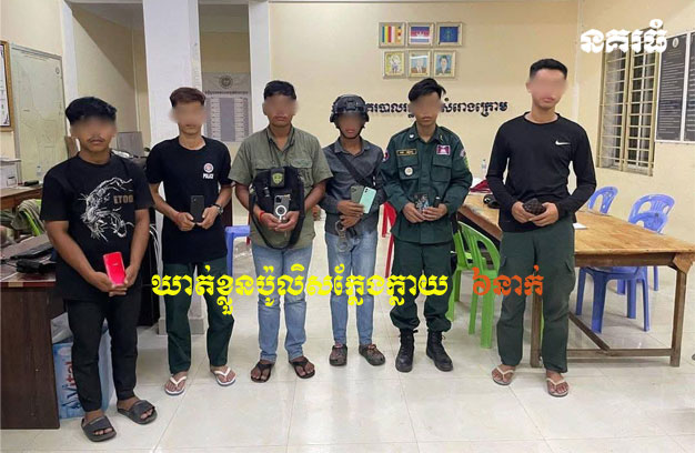 ភ្នំពេញ ៖ ក្មេងស្ទាវឈាមរាវ ១ក្រុម បានបែកគំនិតបបួលគ្នាទិញឯកសណ្ឋាន និងសម្ភារៈសមត្ថកិច្ច យកមកស្លៀកពាក់ អួតសម្ញែងគេឯងនៅពេលយប់ ទីបំផុតត្រូវបានកម្លាំងសមត្ថកិច្ចចុះបង្ក្រាប ឃាត់ខ្លួនបាន ចំនួន៦នាក់ នាំយកមកចាត់ការតាមច្បាប់។