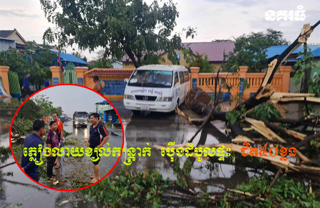 ខេត្តព្រៃវែង ៖ ផ្ទះប្រជាពលរដ្ឋចំនួន ៤៩ខ្នង ត្រូវបានរងការខូចខាត ដោយមានផ្ទះខ្លះ ប៉ើងដំបូង ប៉ើងជញ្ជាំង ខ្លះប៉ើងទ្រេតមួយចំហៀង និង១ខ្នងផ្សេងទៀត បានដួលរលំបាក់ទាំងស្រុង ដោយសារតែភ្លៀងកក់ខែលាយឡំខ្យល់កន្ត្រាក់ ដែលបានបោកបក់ខ្លាំងៗមានរន្ទះផងនោះ។