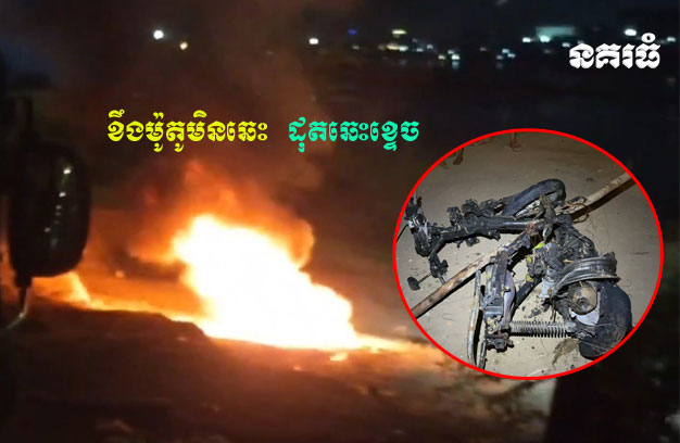 តាមប្រភពព័ត៌មានពីប្រជាពលរដ្ឋនៅកន្លែងកើតហេតុ បានឱ្យដឹងថា មុនពេលកើតហេតុ គេបានឃើញបុរសម្នាក់ មិនដឹងថាមានបញ្ហាអ្វីនោះទេ ស្រាប់តែយកម៉ូតូហុងដា ស្កុបពី ១គ្រឿងបណ្តើរចុះមកក្រោមស្ពានព្រះមុនីវង្សចាស់ ហើយវាយកម្ទេចម៉ូតូ រួចបានដុតចោល ធ្វើឱ្យឆេះសន្ធោសន្ធៅ សល់តែគ្រោងឆ្អឹងដែកតែប៉ុណ្ណោះ។ បន្ទាប់ពីដុតម៉ូតូចោលហើយ បុរសនោះបានដើរចេញទៅបាត់តែម្តង។