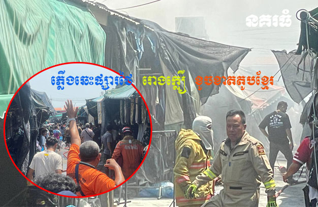 ប្រទេសថៃ ៖ អគ្គិភ័យបានលេបត្របាក់តូបលក់ខោអាវទាហាន របស់អាជីវករខ្មែរអស់ ១តូប និងធ្វើឱ្យតូបនៅជុំវិញភ័យស្លន់ស្លោ នាំគ្នាជញ្ជូនខោអាវចេញក្រៅ កាលពីព្រឹកថ្ងៃទី១ ខែឧសភា ឆ្នាំ២០២៥ នៅផ្សាររោងក្លឿ ស្ថិតក្នុងភូមិប៉ារ៉ៃ ឃុំប៉ារ៉ៃ ស្រុកអារញ្ញ ខេត្តស្រះកែវ ប្រទេសថៃ។