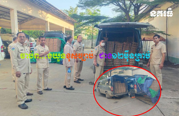 ភ្នំពេញ ៖ រថយន្តសាំងយ៉ុង ចំនួន៣គ្រឿង ដឹកស៊ុតមាន់ ចំនួនជាង១២ម៉ឺនគ្រាប់ ត្រូវបានក្រុមអន្តរាគមន៍បង្ក្រាបបទល្មើសចលនាសត្វ របស់អគ្គនាយកដ្ឋានសុខភាពសត្វនិងផលិតកម្មសត្វ ចាប់ឃាត់បាន ពេលឈ្មួញលួចនាំចូលមកពីប្រទេសវៀតណាម ដោយគ្មានច្បាប់អនុញ្ញាត។