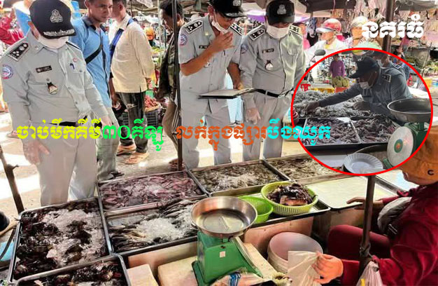 ខេត្តបាត់ដំបង ៖ មន្ត្រីជំនាញ ពិនិត្យឃើញមឹកស្រស់ ជាង ៣០គីឡូក្រាម មានផ្ទុកសារធាតុគីមីហាមឃាត់ ដាក់តាំងលក់នៅក្នុងផ្សារបឹងឈូក ក្រុងបាត់ដំបង។