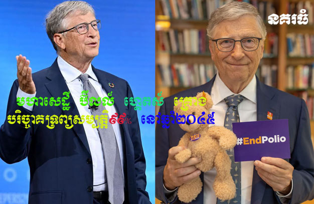សហរដ្ឋអាមេរិក ៖ មហាសេដ្ឋីអាមេរិក លោកប៊ីលល៍ ហ្គេតស៍ (Bill Gates) គ្រោងនឹងបរិច្ចាគទ្រព្យសម្បត្តិស្ទើរតែទាំងអស់ (៩៩%) របស់គាត់ ទៅអង្គការមនុស្សសធម៌ នៅឆ្នាំ២០៤៥ ដែលជាប្រតិបត្តិការឆ្នាំចុងក្រោយនៃមូលនិធិរបស់គាត់។