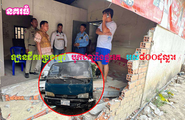 ភ្នំពេញ ៖ រថយន្ត ១គ្រឿង ដឹកប្រេងខ្មៅ ជាច្រើនធុង ខណៈកំពុងបើកបរលឿន ស្រាប់តែវាក់ជាមួយរថយន្តច្រើនគ្រឿងកំពុងឈប់រង់ចាំឆ្លងផ្លូវនៅខាងមុខ ហើយបុរសអ្នកបើកបរ បានកាច់ចង្កូតគេចចេញទៅខាងឆ្វេងដៃ ឡើងលើខឿនចិញ្ចើមផ្លូវ ជ្រុលទៅបុកជញ្ជាំងផ្ទះប្រជាពលរដ្ឋមួយកន្លែង បណ្តាលឱ្យបាក់អស់ ១ប្រឡោះ ត្រូវម្ចាស់ផ្ទះទារសំណង ចំនួន៣ពាន់ដុល្លារ តែក្រោយពីការសម្របសម្រួល ក៏ត្រូវរ៉ូវគ្នា និងបញ្ចប់រឿងត្រឹម ៨០០ ដុល្លារ។