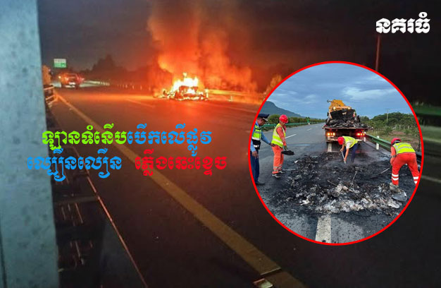 ខេត្តព្រះសីហនុ ៖ រថយន្តទំនើប ១គ្រឿង បើកបរដោយបុរសជនជាតិខ្មែរម្នាក់ និងរួមដំណើរដោយបុរសជនជាតិចិនម្នាក់ កំពុងធ្វើដំណើរនៅលើផ្លូវល្បឿនលឿនសុខៗ លោតចេញសញ្ញាឆេក រួចក៏មានផ្សែងហុយចេញពីផ្នែកខាងមុខរថយន្ត និងធ្វើឱ្យកើតជាអណ្តាតភ្លើង យ៉ាងសន្ធោសន្ធៅតែម្តង ធ្វើឱ្យអ្នកបើកបរប្រញាប់អែបឈប់ រួចចុះពីលើរថយន្តភ្លាមៗ ចំណែករថយន្ត ត្រូវភ្លើងឆាបឆេះបំផ្លាញអស់។